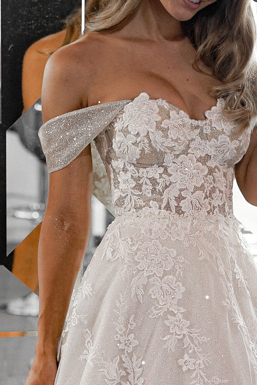 Detachable straps Divon add a delicate, sparkly touch to your dress. Easily attachable, they let you create multiple romantic looks on your big day.